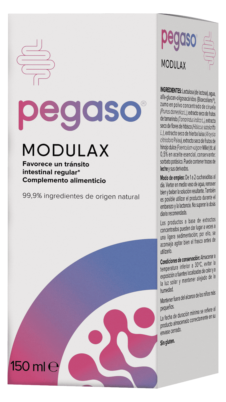 Pegaso Modulax está formulado con ingredientes de origen natural y favorece el tránsito intestinal en casos de estreñimiento ocasional o crónico.